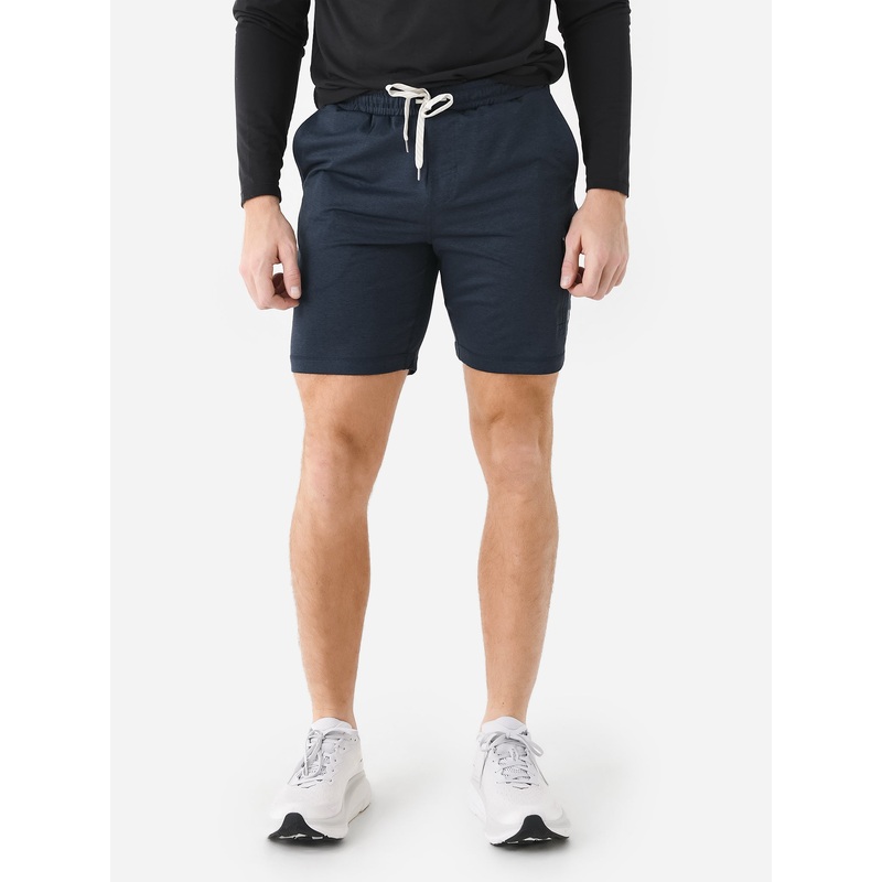 Comfortable athleisure short with four-way stretch and moisture-wicking properties.