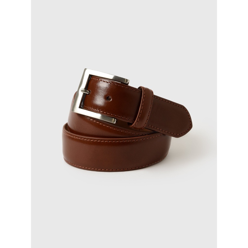 DESCRIPTION:High-quality leather belt with a smooth glazed finish.FEATURES:Brushed Nickel BuckleGenuine Leather FabricationWidth: 1.37 in.