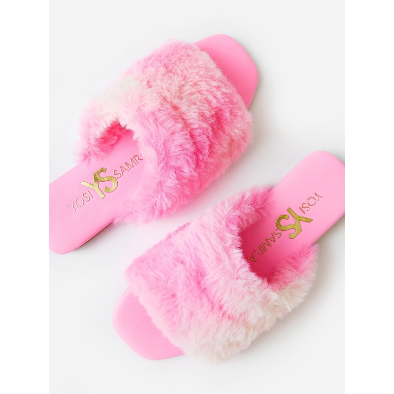 DESCRIPTION:Fluffy slip-on slide sandal with a soft footbed.