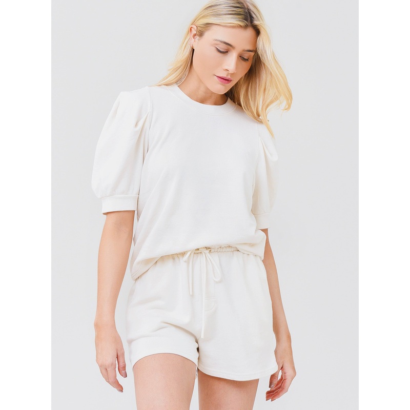 DESCRIPTION:Relaxed-fitting short with an adjustable drawcord and hand pockets.FEATURES:ShortHigh RiseAdjustable WaistbandSide Pocketsinseam: ~ 2.5 in.French Terry Fabrication100% CottonRelaxed FitModel is wearing size Small short.Model's Measurements: Hei