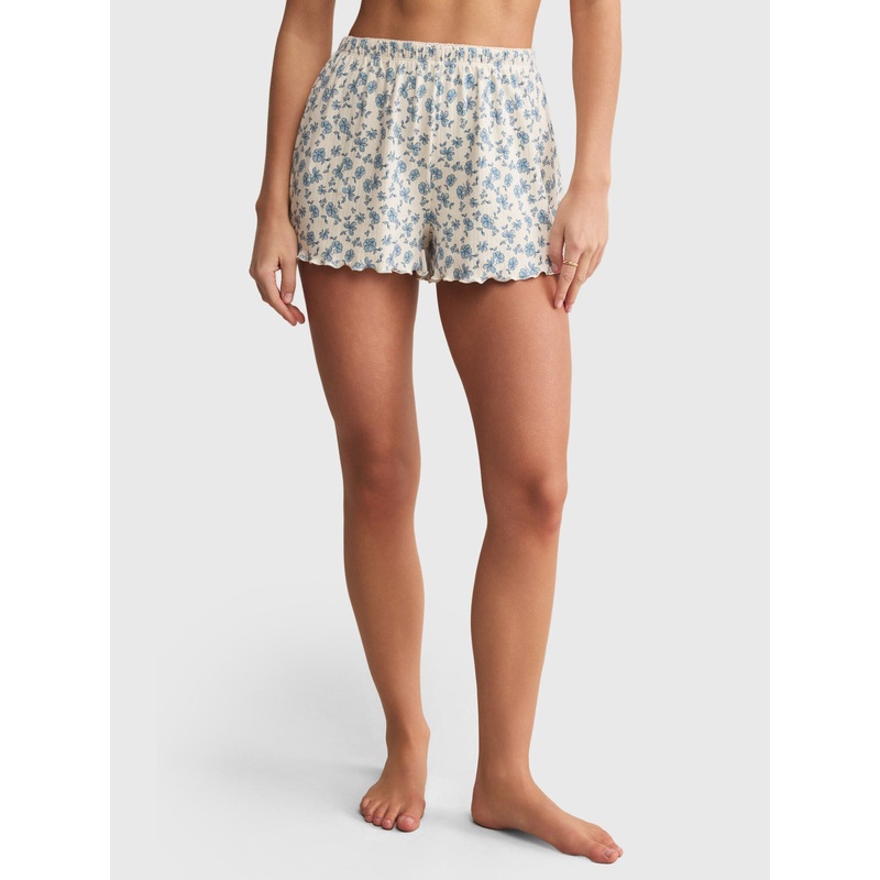 DESCRIPTION:A comfortable pajama short made from silky pointelle fabric with a blue ditsy floral print.FEATURES:Elastic WaistbandLettuce Edge HemInseam: 2.5 in.All-Over Novelty PrintPointelle Knit Fabric95% Polyester, 5% SpandexRelaxed Fit