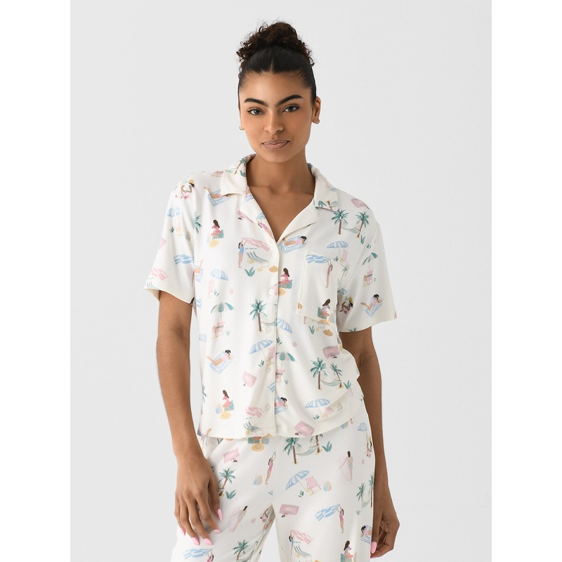 A midweight pajama top made from silky jersey fabric with a beach day-inspired print.
